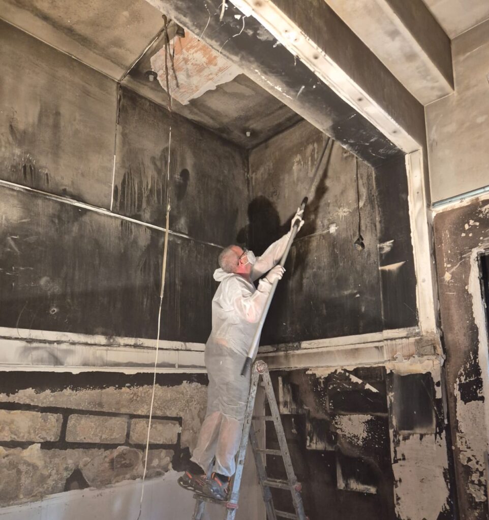 Dopo la fase di pulizia e bonifica, interveniamo con un accurato ripristino delle superfici murarie, applicando nuovi intonaci e trattamenti risananti studiati per eliminare in profondità ogni residuo di fumo, fuliggine e umidità. Grazie all’utilizzo di tecniche avanzate e prodotti specifici, rimuoviamo definitivamente i cattivi odori e restituiamo agli ambienti aria pulita e salubre.